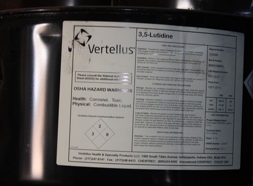 產(chǎn)品名 | 3,5-二甲基吡啶 | 英文名 | 3,5 - Lutidine | 產(chǎn)品外觀 | 無色至淺黃色透明液體 | 包裝規(guī)格 | 180kg/桶(鐵桶) | 產(chǎn)地 | 美國 | 供應(yīng)商 | 凡特魯斯 | 應(yīng)用 | 農(nóng)藥、醫(yī)藥,催化劑等 | 危險類別 | 3類; | CAS NO. | 591-22-0 |