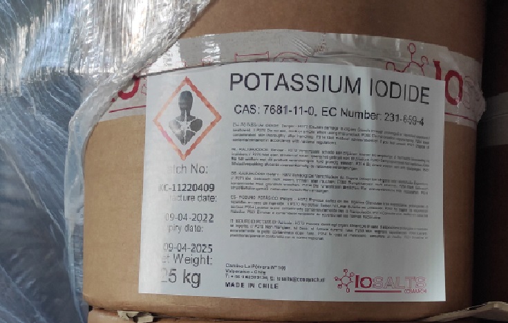 產(chǎn)品名 | 碘化鉀 | 英文名 | Potassium iodide | 產(chǎn)品外觀 | 白色晶體 | 包裝規(guī)格 | 25kg/桶(紙板桶) | 產(chǎn)地 | 智利 | 供應(yīng)商 | COSAYACH | 應(yīng)用 | 用于碘化物、醫(yī)藥、食品添加劑和感光乳化劑等 | 危險(xiǎn)類別 | 非危化品 | CAS NO | 7681-11-0 |